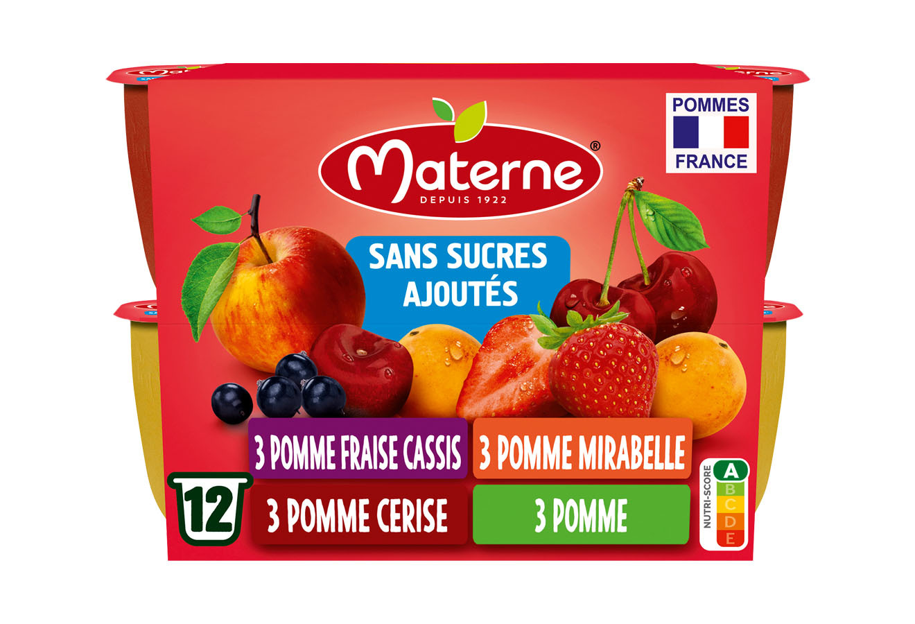Sans sucres ajoutés (conformément à la règlementation, contient des sucres naturellement présents) ; Pommes origine France ; Pommes issues de Vergers écoresponsables ; 1 pot = 1 portion de fruit ; Nutri-Score A ; Naturellement source de fibres.