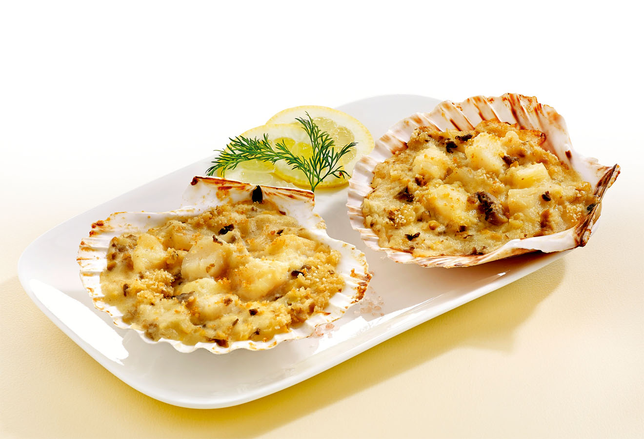 2 Coquilles aux noix de St-Jacques françaises sauce chablis