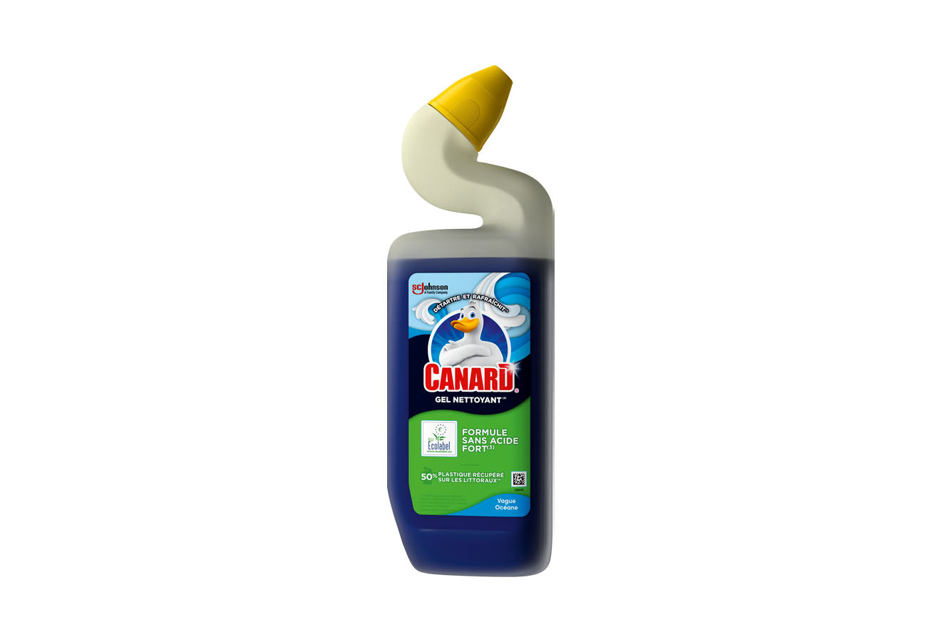 Réf : 60150 - 750mlMODE D'EMPLOI: 1. Lever la lunette des toilettes. 2. Pour ouvrir le bouchon avec sécurité enfant, presser les parties striées et dévisser. 3. Incliner la bouteille pour remplir le bec verseur. 4. Pour désinfecter, diriger le gel Canard® sous les rebords et appliquer en recouvrant uniformément la cuvette (60 ml de produit). 5. Laisser agir pendant 5 minutes. 6. Brosser l'ensemble de la cuvette, puis tirer la chasse d'eau. 7. Revisser le bouchon jusqu'au déclic immédiatement après usage. Pour prévenir la formation du tartre etmaintenir vos toilettes propres, renouveler 3 fois par semaine. Fréquence d'utilisation: maximum 3 fois par semaine.