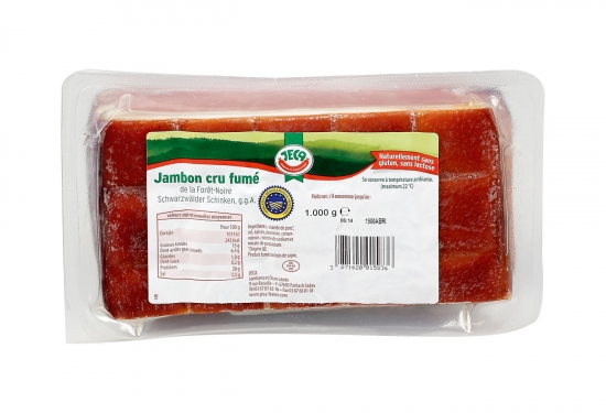 Jambon caractérisé par son goût fumé, typique, obtenu par un fumage au bois de sapin de la Forêt Noire et aux branches de genévriers. Produit authentique et unique, bénéficiant de l'IGP.